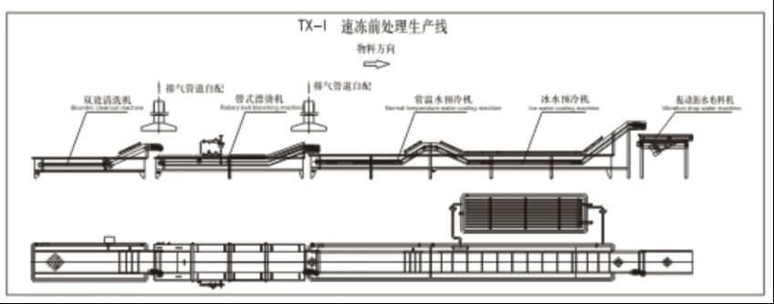 速凍水果預處理生產(chǎn)流水線主要由:高壓清洗劑、挑選輸送機、氣泡清洗機、螺旋漂燙機、常溫冷卻機、冰水預冷機、振動瀝水機組成,實現(xiàn)蔬菜清洗、分選、漂燙、冷卻、預冷、濾水等速凍預處理流程的自動化。