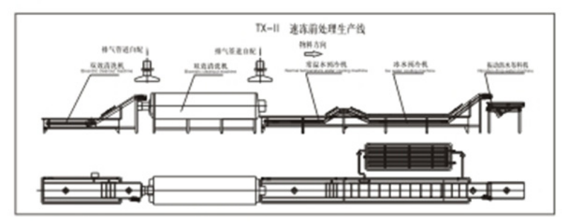 速凍前處理生產(chǎn)線的是該生產(chǎn)線漂燙段采用螺旋式漂燙機,比較適宜加工比重小,易懸浮的果蔬制品。