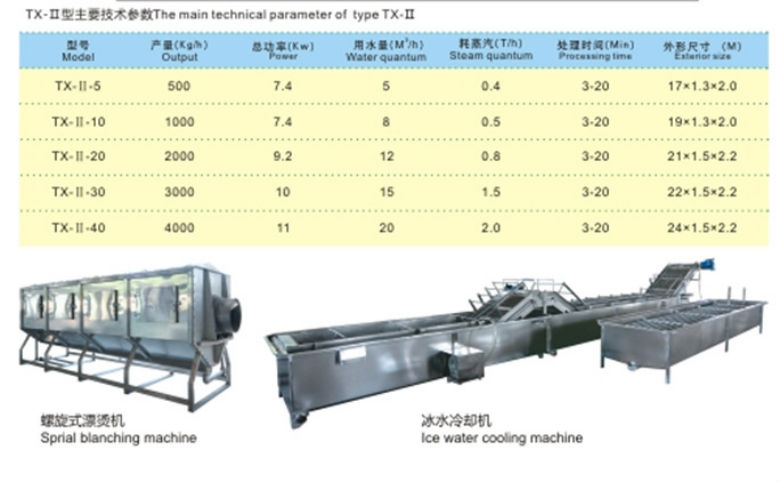 適用于加工芋子、青刀豆、蘆筍、菠菜、甘藍菜、土豆片、有蘿卜片、花菜等菜葉類和莖根類蔬菜及黃桃、桑葚等水果,處理時間3~20分鐘.
