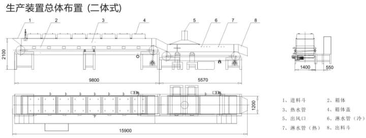 設(shè)備概述:ZFJ型 - 臥式全自動蒸飯機(jī)的技術(shù)開發(fā)和技術(shù)創(chuàng)新,并吸收國內(nèi)外釀酒加工的先進(jìn)制作工藝和傳統(tǒng)制作工藝相結(jié)合,為加快新產(chǎn)品的技術(shù)更新和換代,從而研發(fā)了最新節(jié)能環(huán)保臥式全自動蒸飯機(jī)新機(jī)型。隨著時代的不斷進(jìn)步,釀酒行業(yè)的發(fā)展和生產(chǎn)能力的不斷提升,原有勞動力巳滿足不了整個社會對酒的需要,所以釀酒行業(yè)必須加快機(jī)械化生產(chǎn)來替代勞動強(qiáng)度,才能穩(wěn)住企業(yè)發(fā)展步伐。臥式全自動蒸飯機(jī)是通過蒸汽(天然氣和熱電尾氣為能源)與風(fēng)的最佳優(yōu)化組合,從而達(dá)到蒸煮和冷卻的最佳效果。該設(shè)備一般分為兩個部分,蒸煮段和冷卻段。