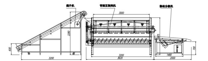 1.剝殼生產(chǎn)能力:1500Kg/h,以豌豆為例;