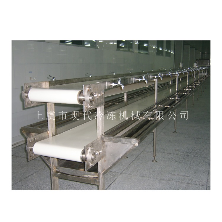 魚片加工線可分為汽泡清洗機(jī)、粗加工線、魚去皮機(jī)、精加工線幾大件組成,粗加工線設(shè)計(jì)為三層輸送機(jī),分別為原料輸送一層,一層邊上設(shè)有工作臺(tái),工作臺(tái)兩邊配有水籠頭,去頭、去尾、去內(nèi)臟,廢料輸送一層;精加工線設(shè)計(jì)為二層輸送機(jī),分別為原料輸送一層,一層邊上設(shè)有工作臺(tái),為魚片去刺、整理。