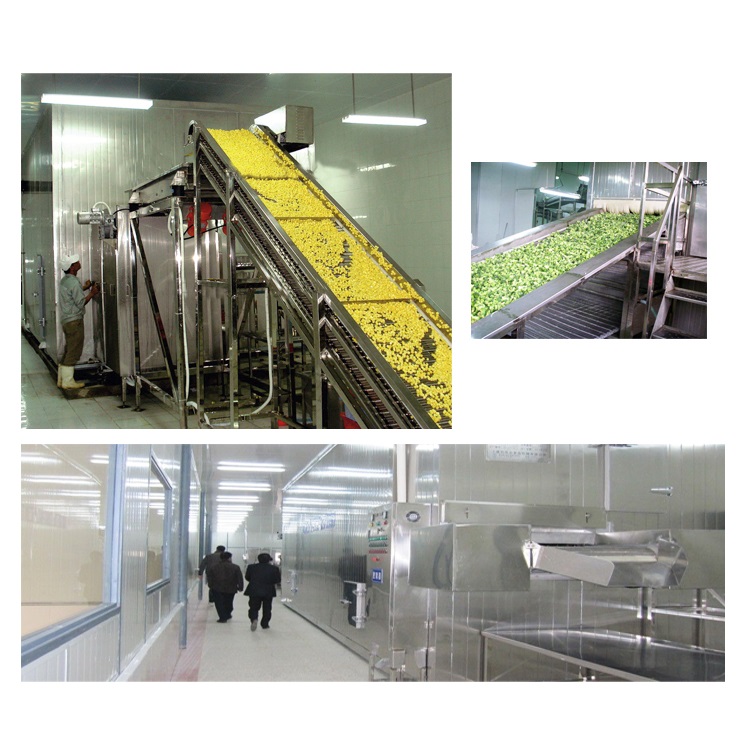 SLD系列新型高效流態(tài)化速凍機(jī)是我公司充分吸收國(guó)內(nèi)外的先進(jìn)技術(shù),揚(yáng)長(zhǎng)避短、 集各家之長(zhǎng),新開發(fā)的新一帶速凍裝置,精湛的加工技術(shù)及一流的加工工藝,確保產(chǎn)品在同行中處于領(lǐng)先地位。該機(jī)融入最新速凍技術(shù)和最新設(shè)計(jì)理念,采用多項(xiàng)最新流態(tài)化凍結(jié)技術(shù),是當(dāng)前產(chǎn)品性能最卓越,設(shè)計(jì)最先進(jìn)的速凍機(jī)。該系列速凍裝置是實(shí)現(xiàn)果蔬類食品及部分海產(chǎn)品流態(tài)化單體凍結(jié)的最佳設(shè)備,用風(fēng)力強(qiáng)勁的離心式風(fēng)機(jī),凍品在不銹鋼輸送帶上移動(dòng),隨著氣流速凍的增加,食品層開始松動(dòng);當(dāng)風(fēng)壓達(dá)到一定數(shù)值時(shí),食品顆粒不再保持靜止?fàn)顟B(tài),部分顆粒懸浮向上,造成床層膨脹,空隙率增大,即形成流化床;在此流化床上受由下而上的強(qiáng)冷風(fēng)吹浮處在懸浮狀態(tài)下的食品,凍品各面均受到冷風(fēng)繞流,來實(shí)現(xiàn)凍品的快速凍結(jié),形成單體,使被凍的凍品迅速通過冷卻,表層凍結(jié),深層凍結(jié)三個(gè)階段,從而獲得最高品質(zhì)的速凍食品。